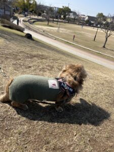 めいちゃんは 距離を空けて公園内を楽しみました。