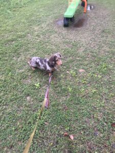 トリミングサロンに着いたら 緊張が取れてトリマーさんにメロメロでした。